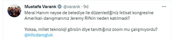 Meral Hanım neyse de belediye ile düzenlediğiniz iktisat kongresine Amerikalı danışmanınız Jeremy Rifkin neden katılmadı? Yoksa, millet teknoloji görsün diye tanıttığınız Zoom mu çalışmıyordu?