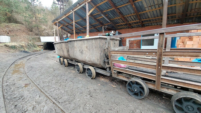Özel bir maden işletmesinde maden ocağının iç kısmında linyit kömürü çıkarma çalışması yapıldığı sırada tahkimat direği kırıldı.