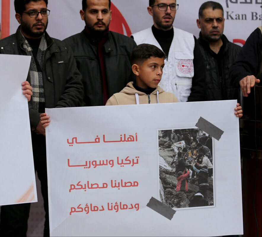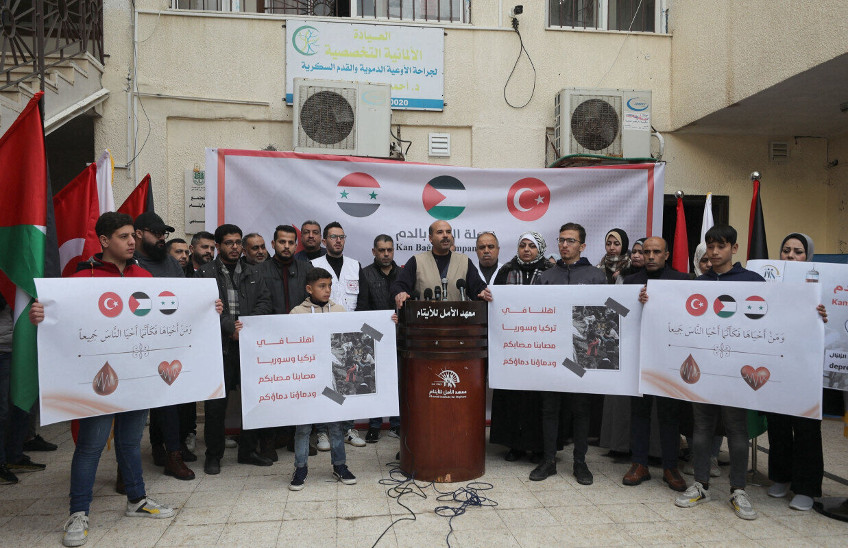 İsrail ablukası altındaki Gazze’de, Türkiye ve Suriye’deki depremzedeler için kan bağışının da yapıldığı dayanışma gösterisi düzenlendi.