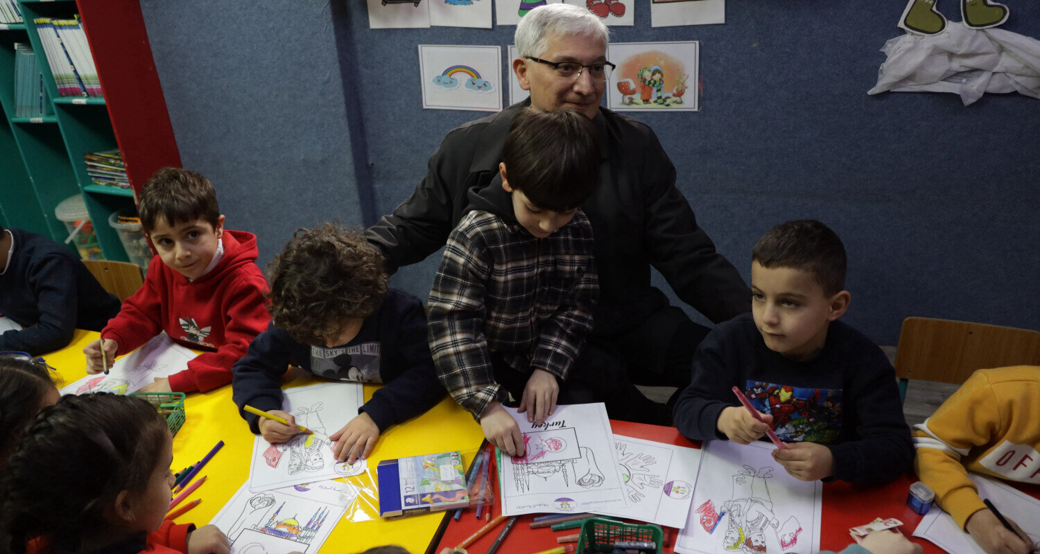 Türkiye’nin Filistin nezdindeki Kudüs Başkonsolosu Büyükelçi Ahmet Rıza Demirer de anaokulu ziyaret ederek, Filistinli miniklerin resim dersine katıldı ve çizimlerini inceledi.