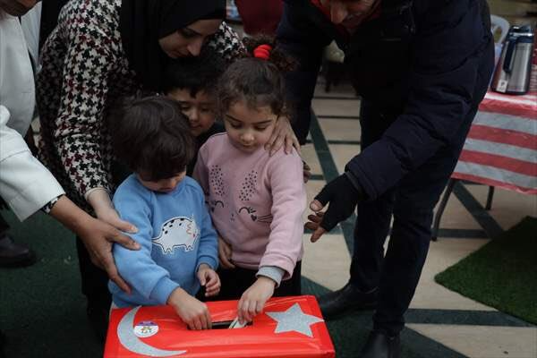 Dersin ardından çocuklar, velilerin girişimiyle okulun bahçesine kurulan bağış sandığına depremde zarar görenler için para atarak yardımda bulundu.