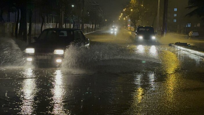 Sağanak yağış hayatı olumsuz etkilerken, bazı caddelerde su baskını meydana geldi.